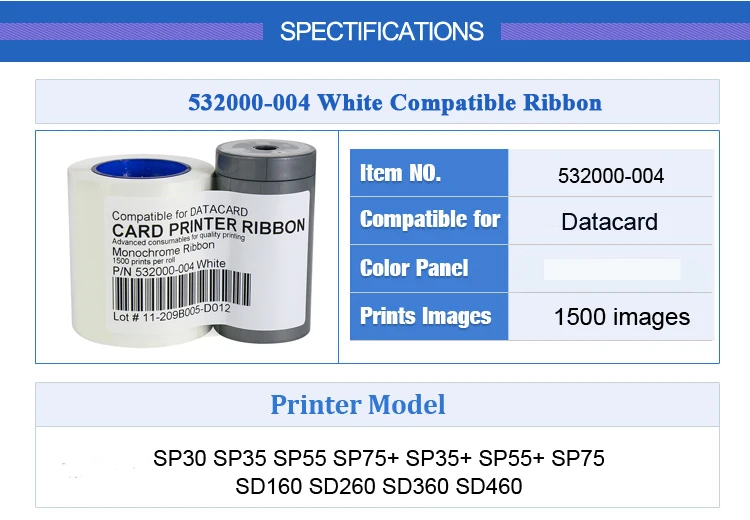 Отзывы о Упаковка из 2 шт. 532000-004 белая лента для карт 1500 принтов принтера Datacard SP35 + SD360 FP65 SP75