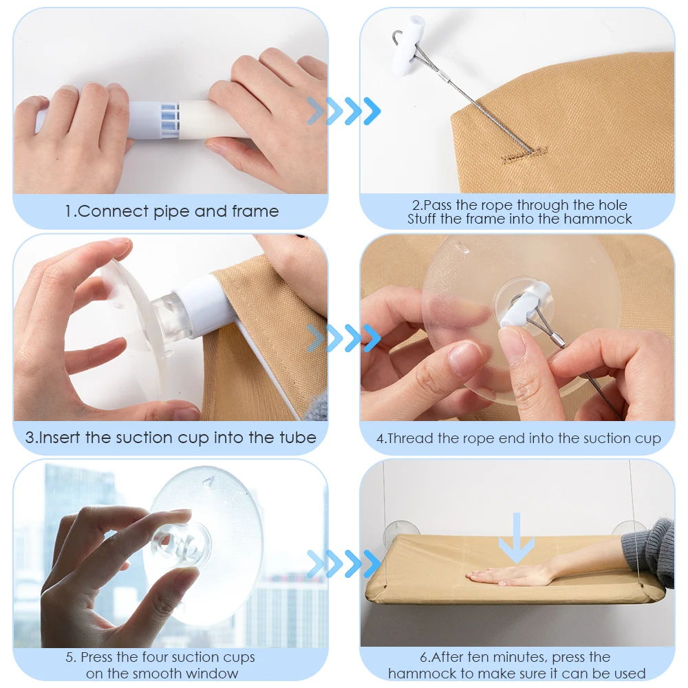 4. Кровать предназначена для прикрепления непосредственно к окну с четырьмя присосками (не требуется оборудование или инструменты.)