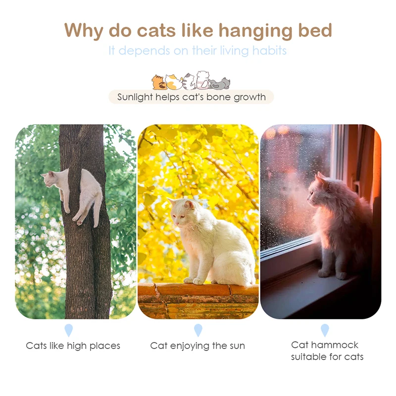 Видео и фотографии установки гамака для кошек находятся на странице деталей, пожалуйста, внимательно проверьте перед использованием
