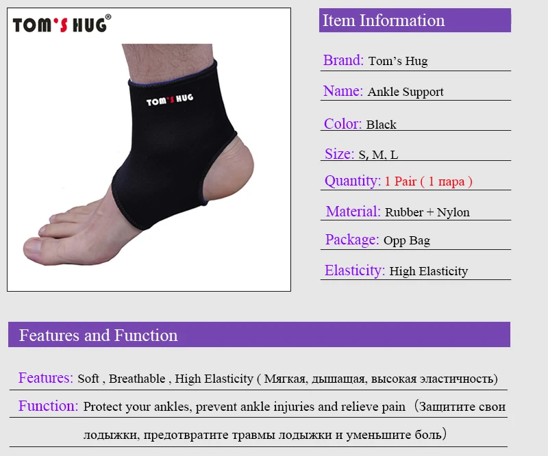 Информация о товаре:Название:Поддержка лодыжки Tom's HugРазмер:S(Детская одежда подходит forFoot Длина: 20-22,5 см (7,87-8,86 дюйма)М(SuitableforFoot Длина: 22,5-24,5 см (8,86-9,65 дюйма)L(SuitableforFoot Длина: 24,5-27,5 см (9,65-10,83 дюйма)Посылка: opp bagКоличество: 1 пара (2 шт.)Характеристики: теплый, мягкий и дышащийФункция: Защищает лодыжку, предотвращает артрит и облегчает боль в суставахПримечание: размер измеряется вручную, допускается погрешность в 1-2 см, спасибо