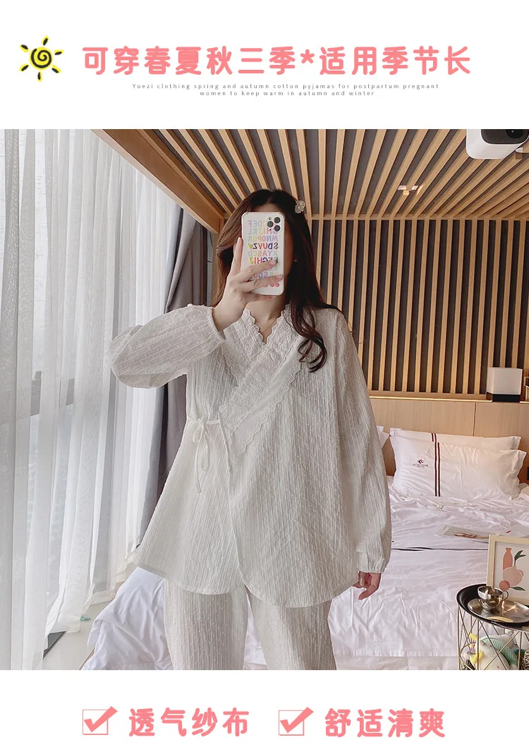 Одежда для кормящих мам пижамы из хлопка для беременных модные хлопковые простые газовые пижамы для грудного вскармливания комплект из топов и штанов