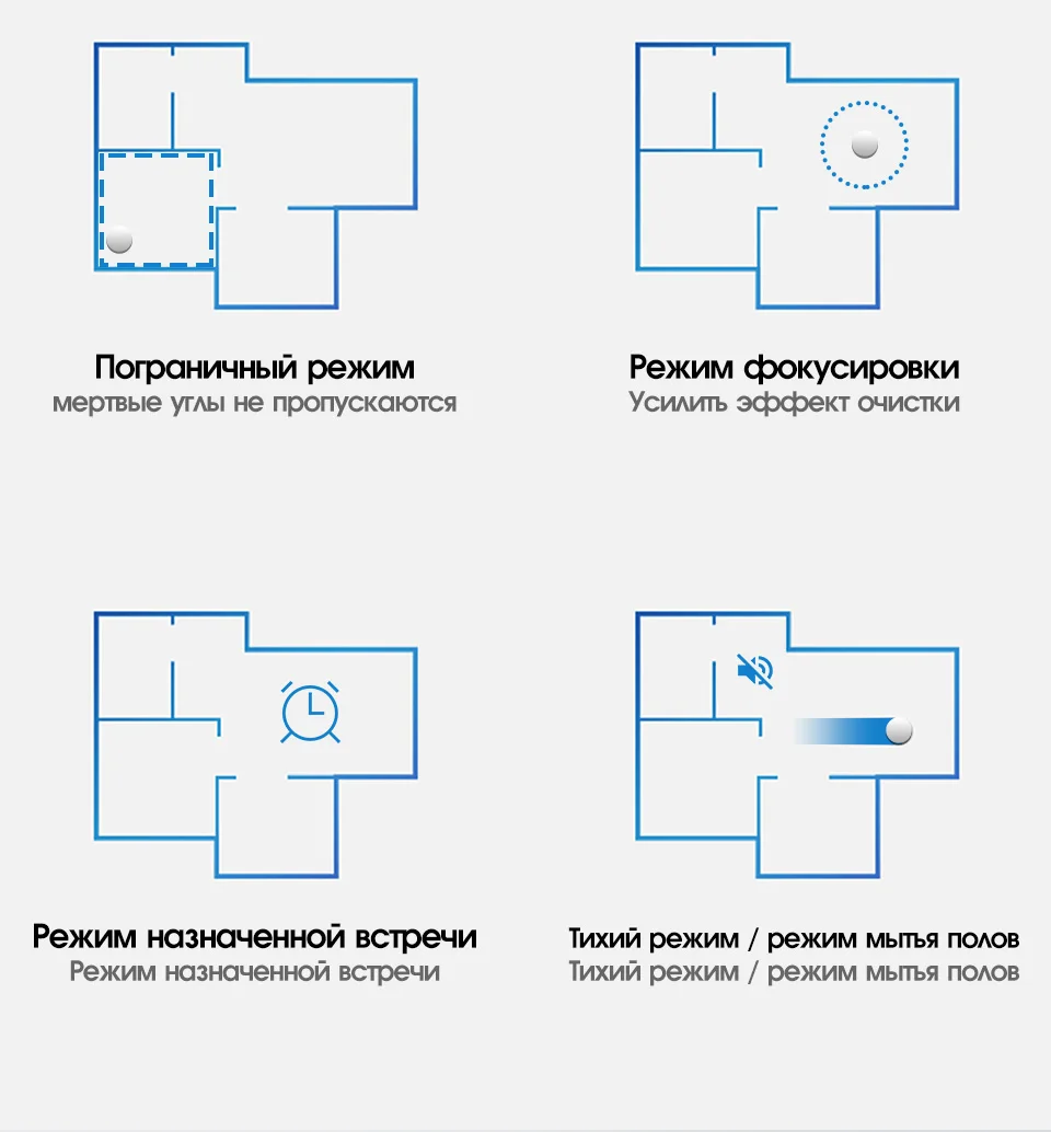 Автоматическая уборка, по спирали, по периметру , от границы до границы и не только.
