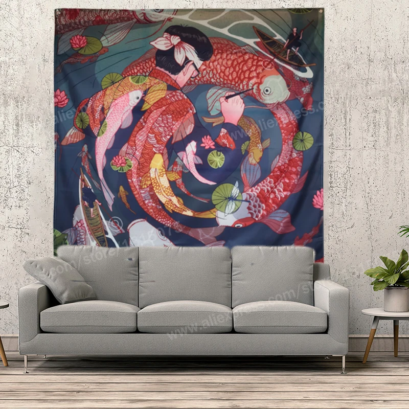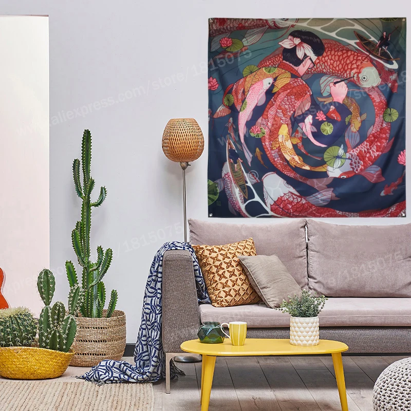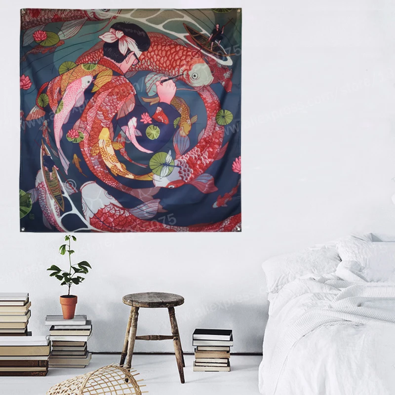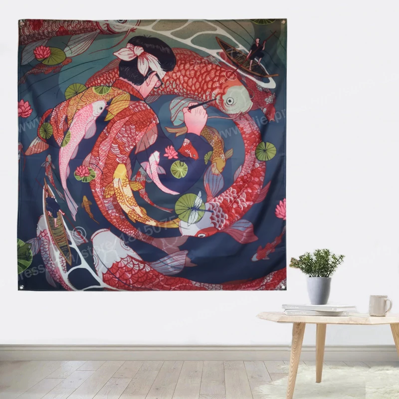 Отзывы о Fish Carp японский художественный плакат с татуировкой флаг женской подвески 4