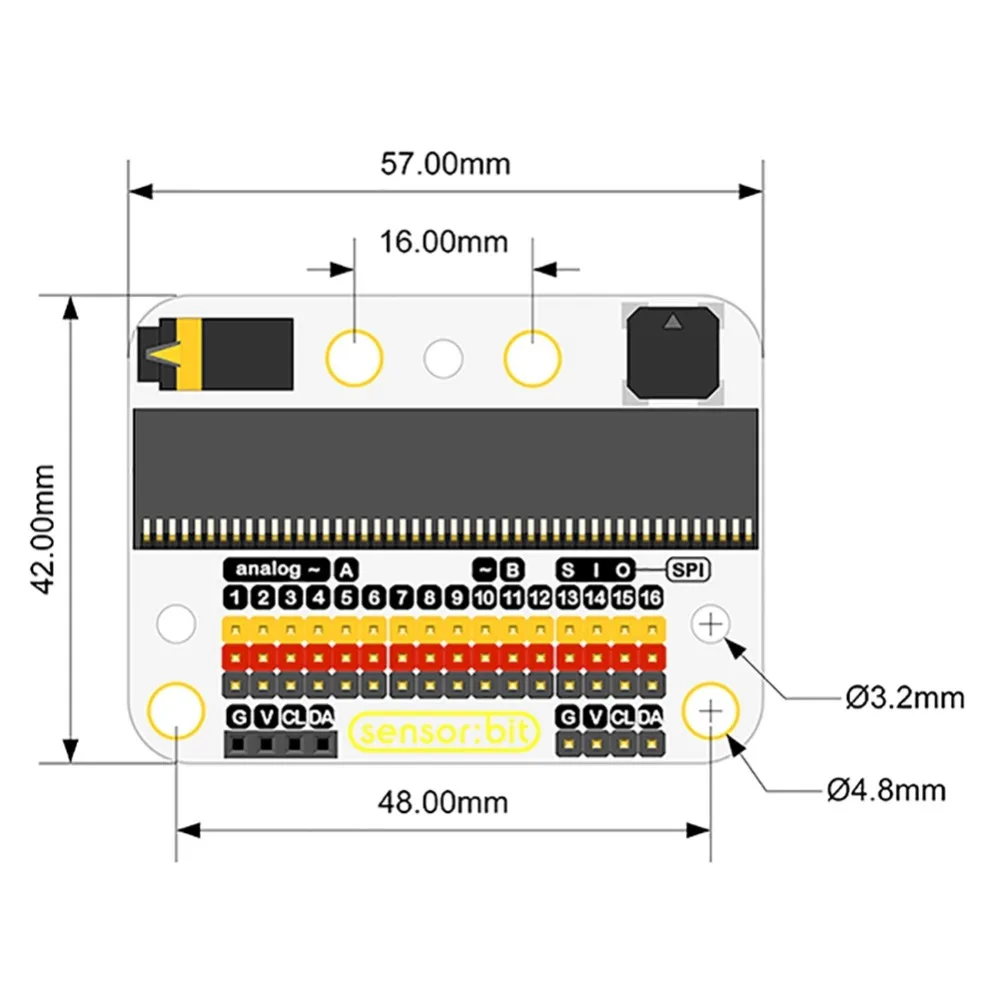 5 шт. макетный адаптер для BBC Micro: битная микробитная плата микроконтроллер для детей образовательное Программирование кодирования FZ3247US $41,99 Долларов США/шт Датчик: битный датчик битов для BBC micro: битный микробитный датчик бит для LEGO, для детского образования Описание: Датчик: bit-это разделительная плата на основе micro:bit. Он расширил все доступные порты IO на micro:bit и вывел их в виде GVS. С помощью этой платы мы можем расширить различные 3V электрические кирпичные модули, такие как светодиодный светильник, фотоэлемент и т. д. На плате встроен звуковой сигнал и аудиоразъем, что позволяет нам слушать музыку с зуммера или с нашими наушниками. Особенности: Напряжение: 2,7-3,3 V Расширьте большинство портов IO на micro: бит на GVS pins. Самостоятельно выводит IIC интерфейс. Включите подключение к IIC компонентам, таким как OLED, BME280 и т. д. Встроенный звуковой сигнал и аудиоразъем. Поддержка Lego интерфейсом. Отметьте каждый порт IO шелковой печатью. Посылка включает в себя: 1 X Датчик: бит для micro: бит (Примечание: микро: битовая плата не входит в комплект)