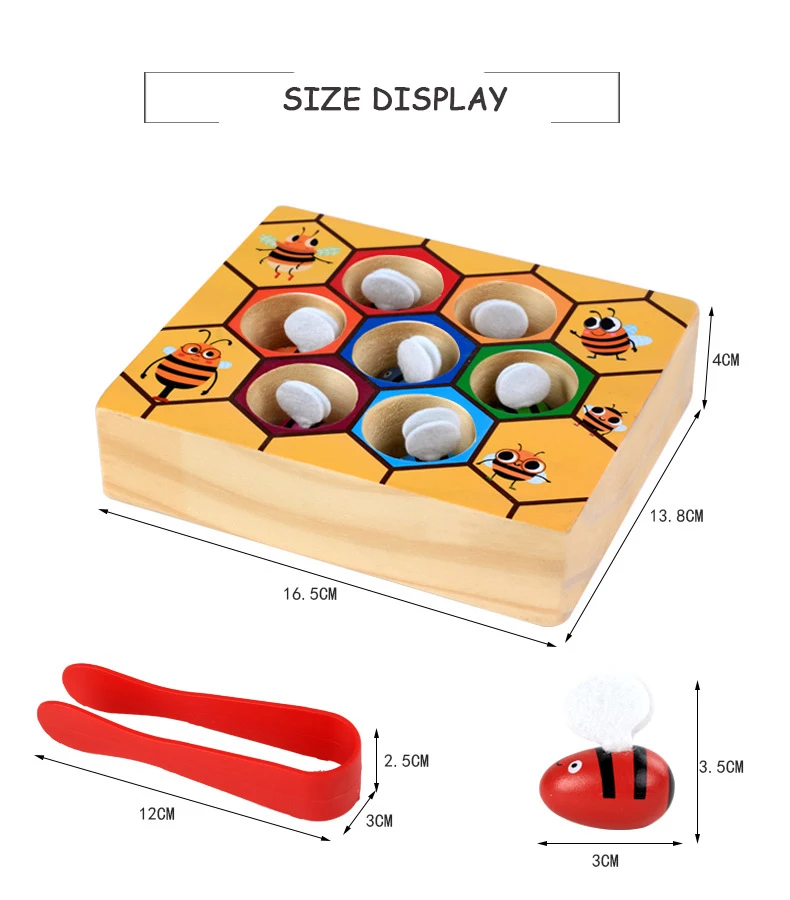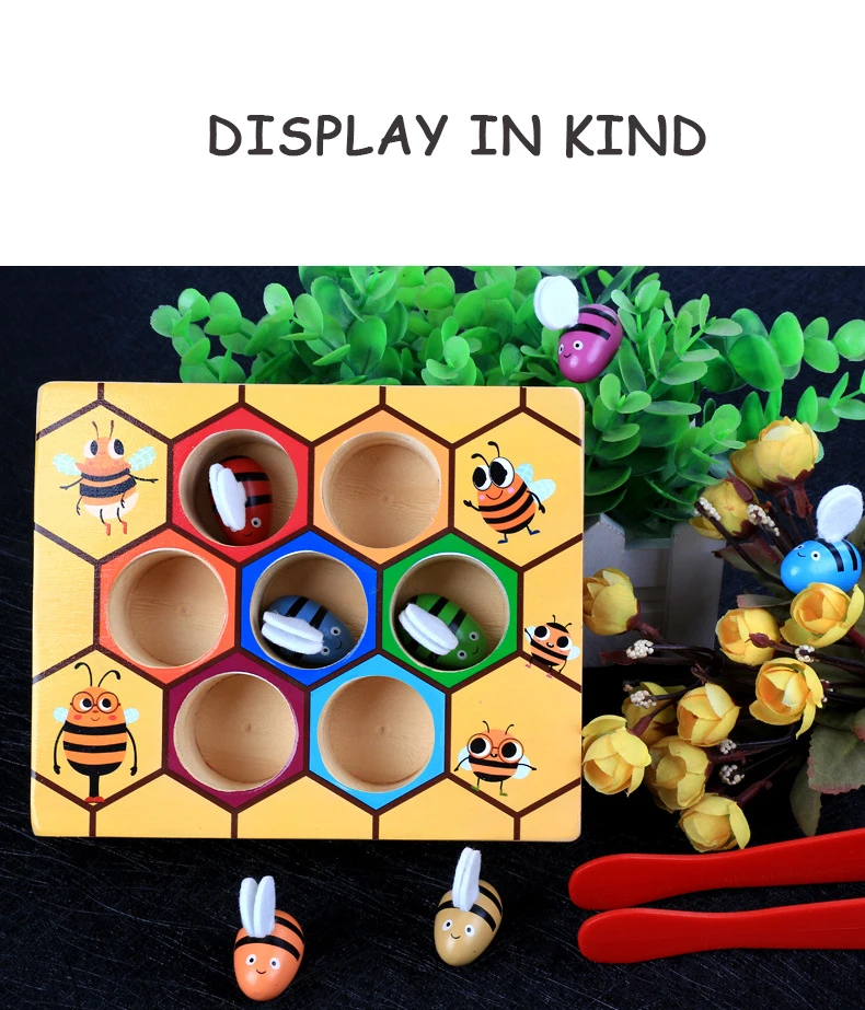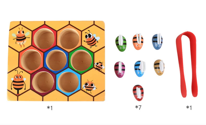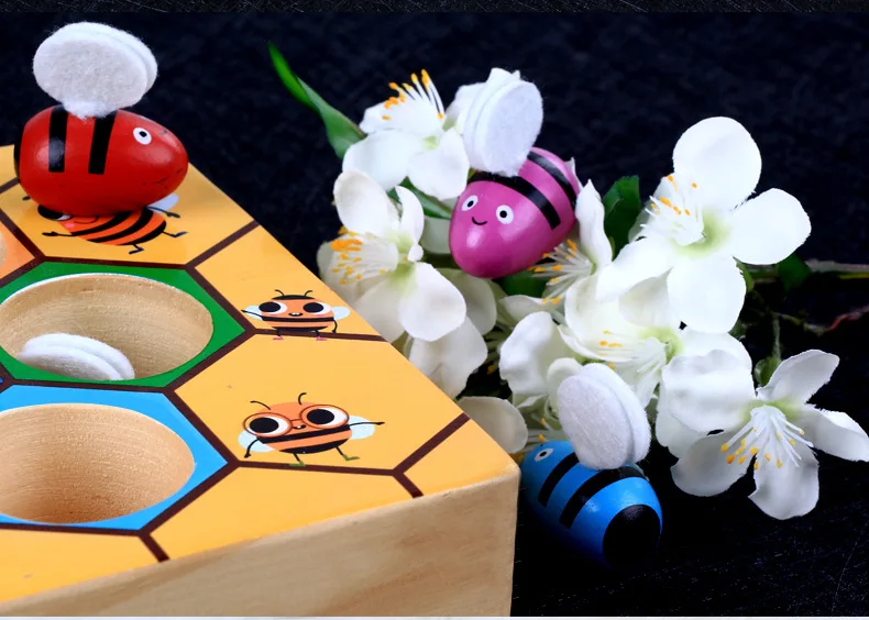 3. Очень милые деревянные игрушки. Младенцы могут прикрепить пчел пинцетом и поместить их в нужное гнездо одного цвета