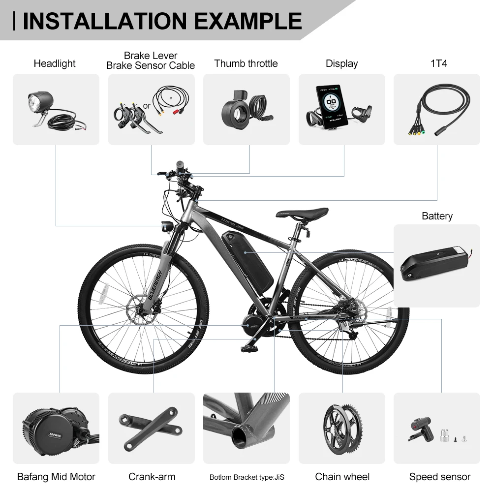 Подарки: 1 шт. 6 в передний светильник + 1 шт. перчатки + 1 шт. ключ для установки инструмента + 1 шт. съемный инструмент для кривошипа + 1 шт. сумка для аккумулятора + 1 шт. XT60 порт Соединительный кабель для аккумулятора + 1 комплект * Установка аксессуары для 73 мм каретка + 4 шт. 36V 250W наклейки + Кабельные стяжки + Руководство пользователяТеплые советы: