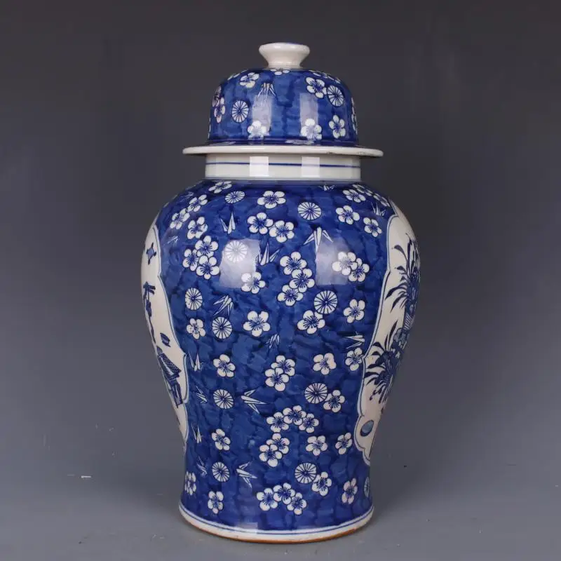Отзывы о Антикварная кувшин фарфоровая для имбиря орнаменты старая Kangxi синяя и белая
