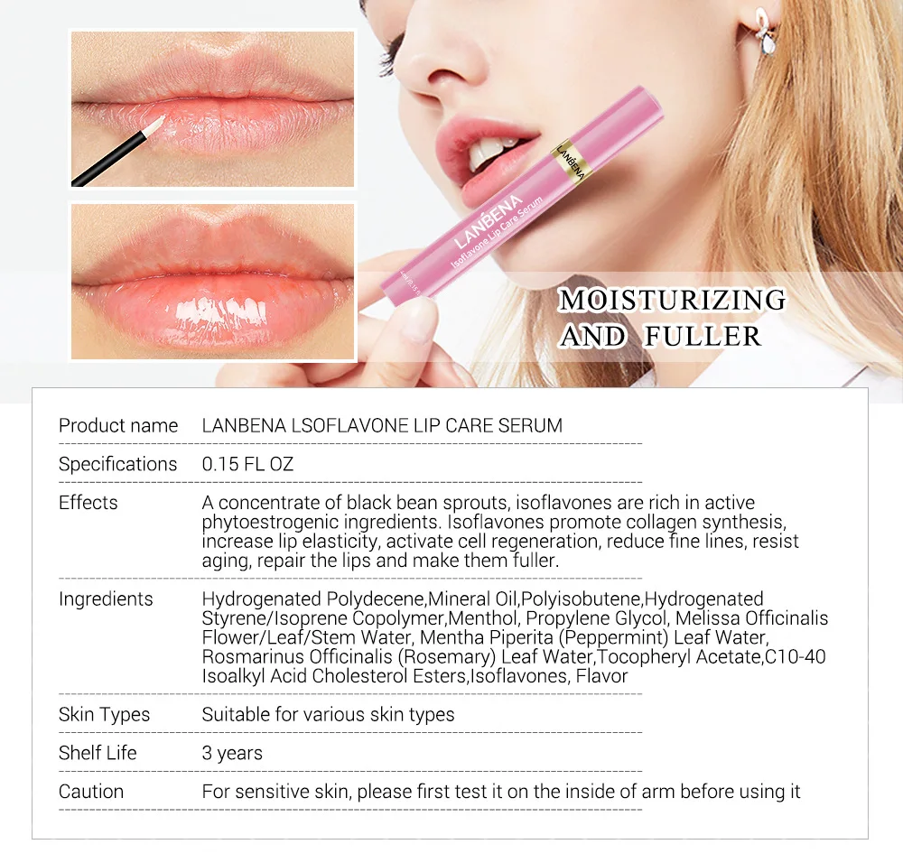 LANBENA, сыворотка для ухода за губами, Увлажняющая восстанавливающая маска для губ, повышающая эластичность губ, уменьшает тонкие линии, сопротивляется старению красоты