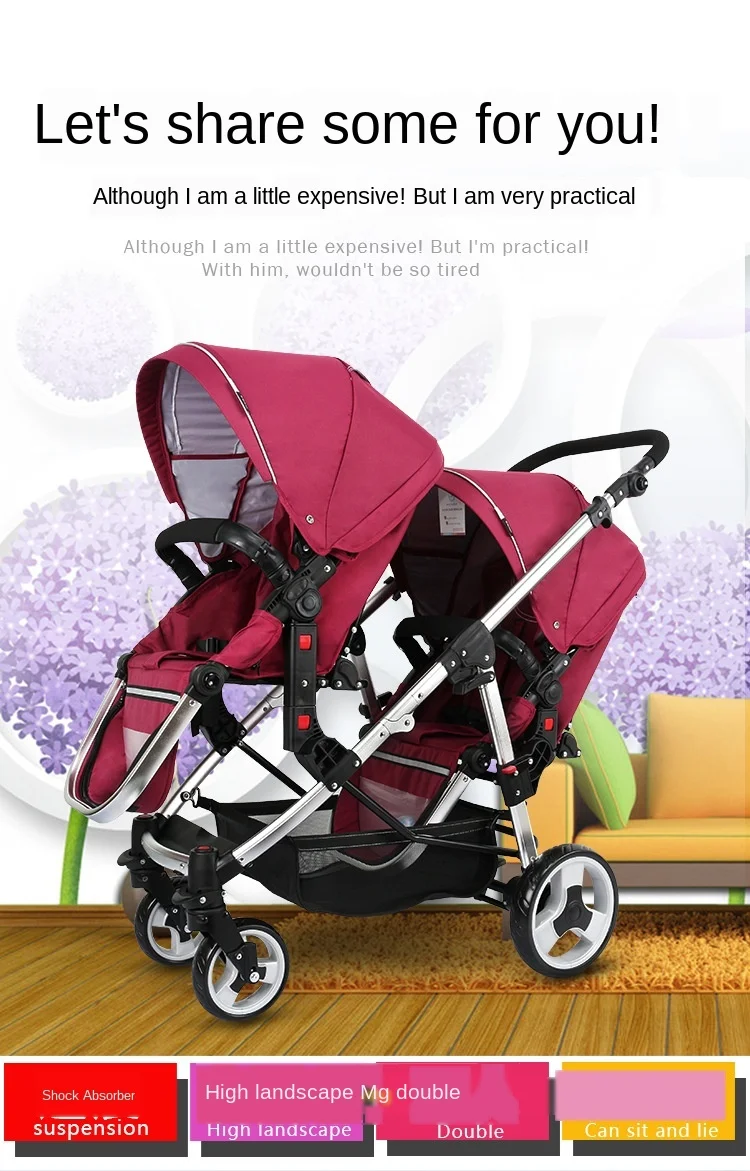 Отзывы о Прогулочная коляска для новорожденных с 4 колесами|Двойная коляска| |