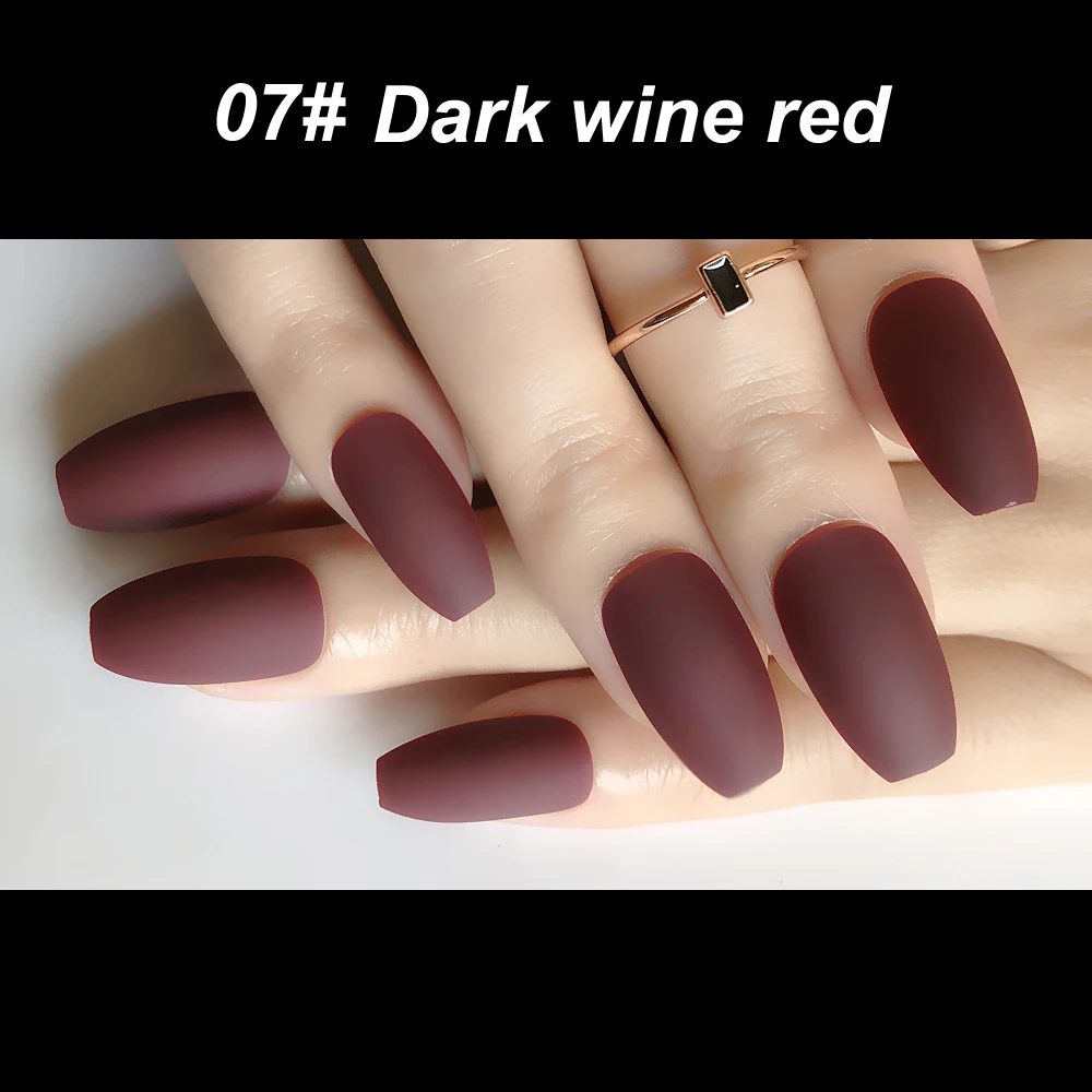 Оптовая продажа, накладные гробы, матовые винно-красные матовые ногти, цветные, белые, черные, розовые, красные, павлин, синие накладные ногти, 30 цветов