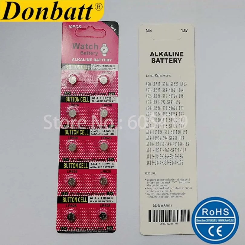 800 карт (8000 шт)/Лот 1,5 v AG4 LR626 Щелочная кнопка батареиПараметры: AG4/LR626