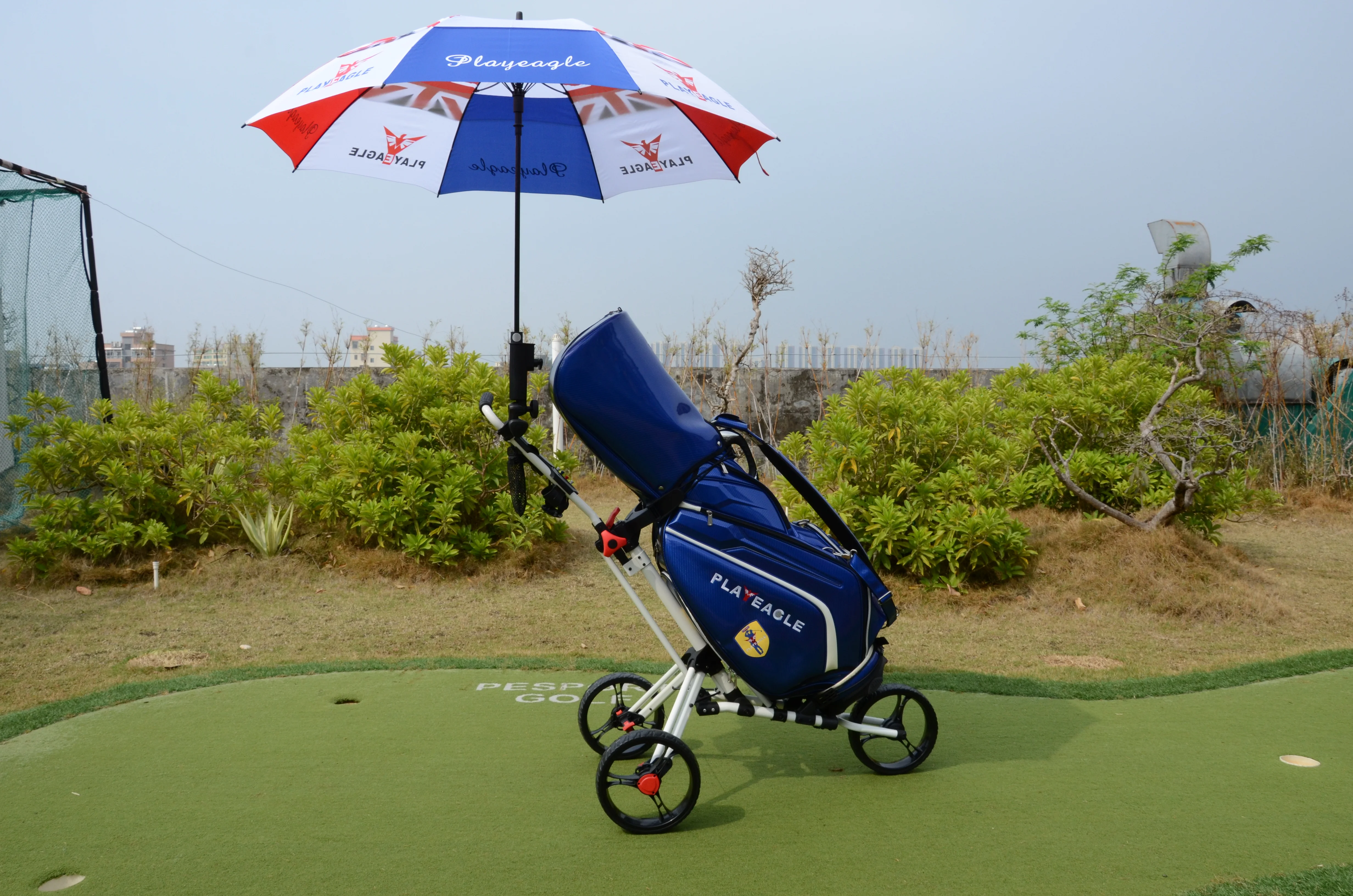 Отзывы о Складная тележка для гольфа PLAYEAGLE дизайн с зонтиком 3 подставка дисков