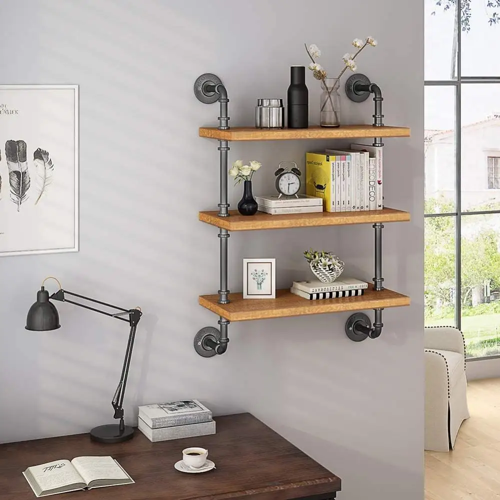 Деревенская настенная полка, промышленные стеллажи для труб, винтажная книжная полка 3/4 уровня- Размер: 3-уровневый