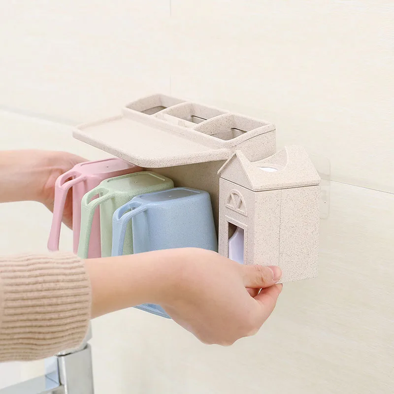 Wheat straw wash setConvenient: hands-free, one-Presstoothpaste dispenser.