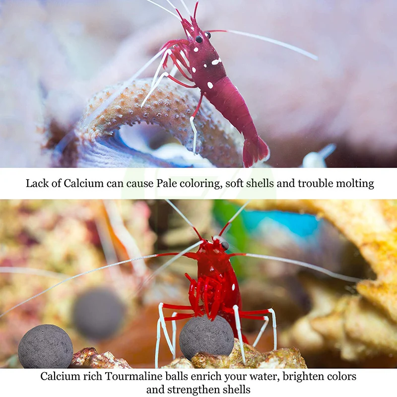 Преимущество, которое он приносит креветкам: 1. Дайте лучшее качество воды, деионизируя воду 2. Обеспечить необходимые минералы для роста 3. Улучшение расплавления полос 4. Повышает уровень выживания детских креветок 5. Осветляет цвет тела 7 ~ 10 шт. используется для бака 45 см. 12 ~ 15 шт используется для резервуара 60 см