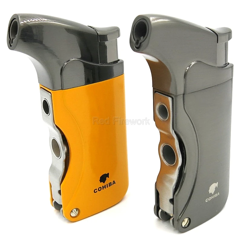COHIBA Многофункциональный ветронепроницаемый фонарь, зажигалка Jet Flame Gas многоразовая сигарета для сигар, модные зажигалки, встроенный 2 прикуривателя