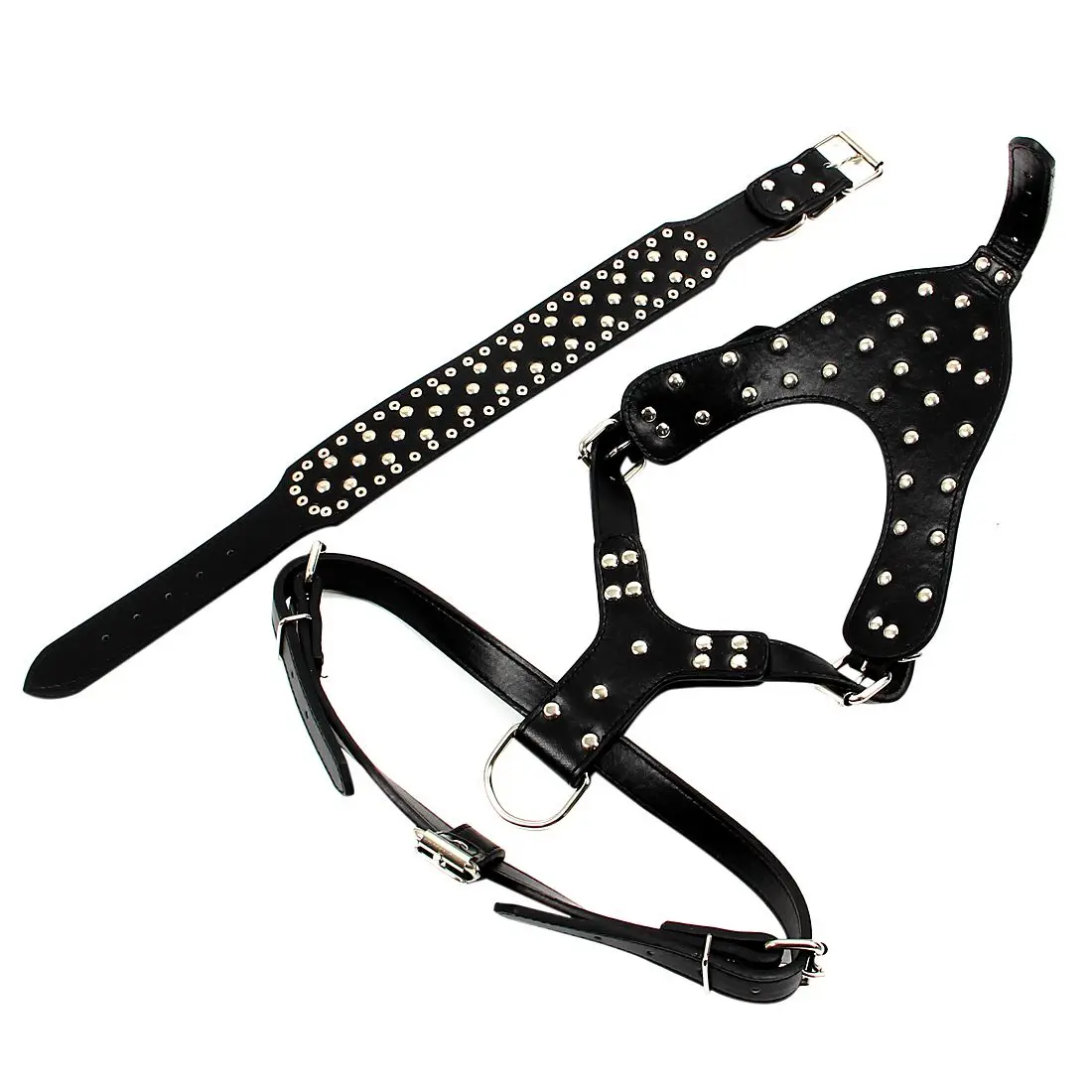 Комплект состоит из нагрудника и воротника, по выгодной ценеСтильный дизайн с шипами, очень прочный