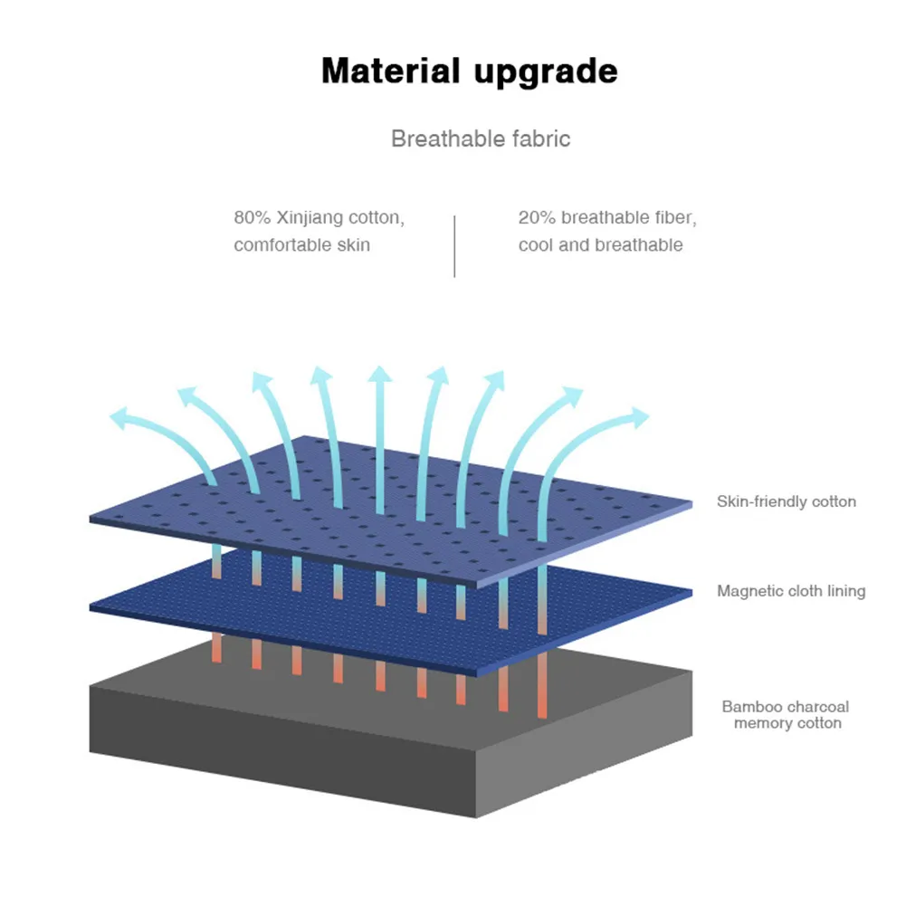 Обновленный материал, дышащая ткань, 80% Синьцзян Хлопок, удобная кожа, 20% дышащее волокно, холодная воздухопроницаемость, приятный для кожи хлопок, магнитная тканевая подкладка, бамбуковый уголь пена с эффектом памяти.