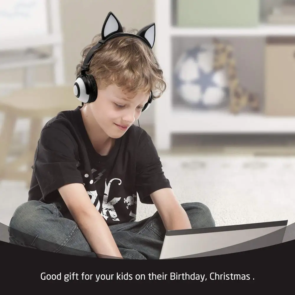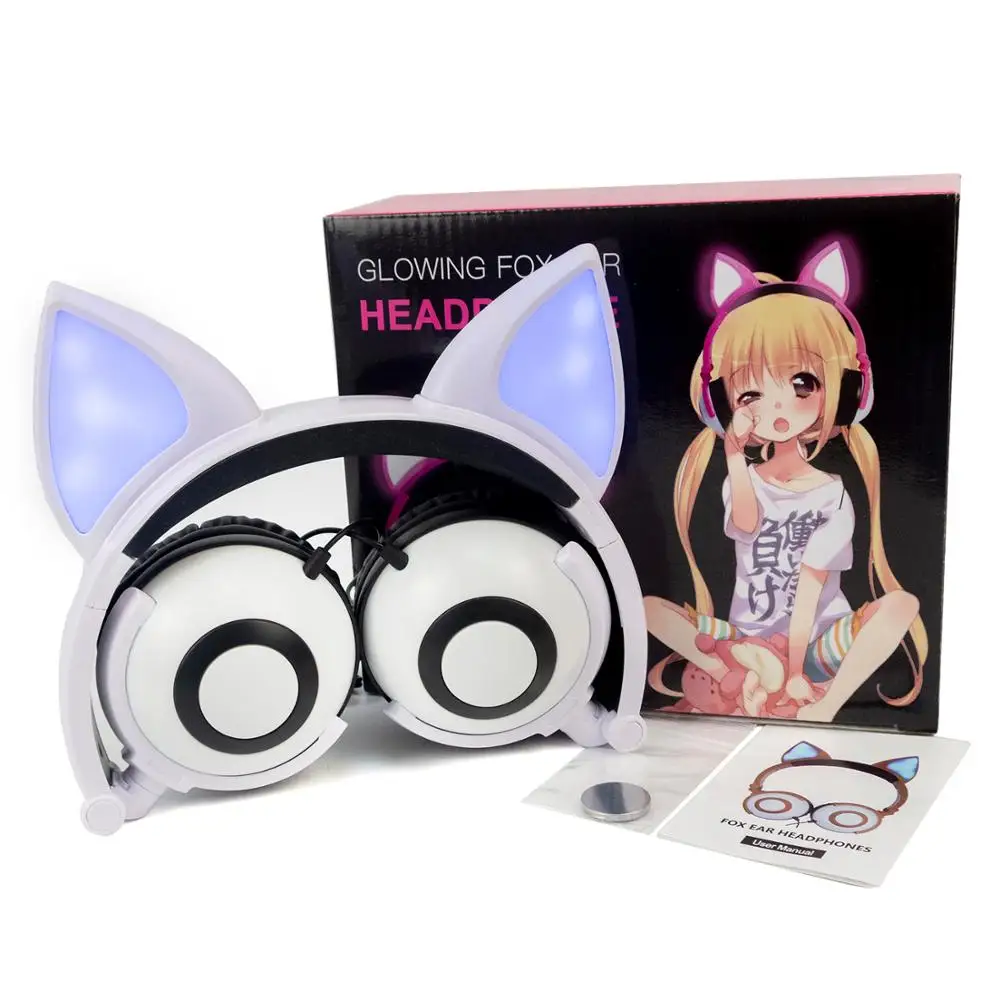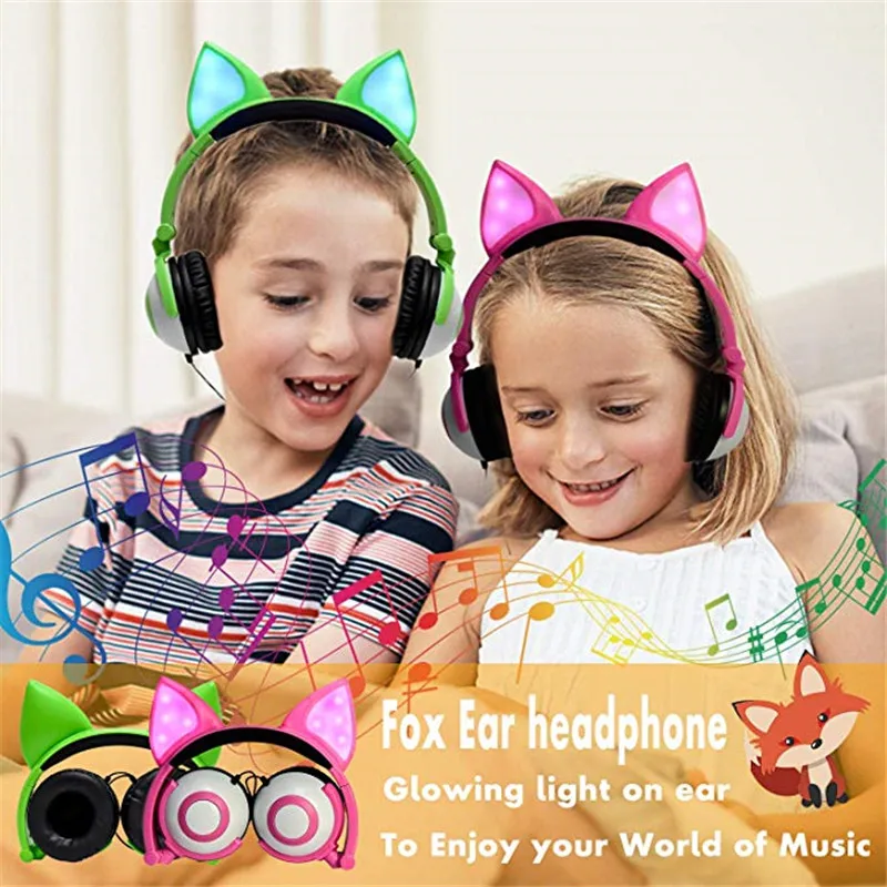 LIMSON проводные наушники с животными, светодиодные складывающиеся милые наушники с лисьими ушками для детей, мальчиков и девочек