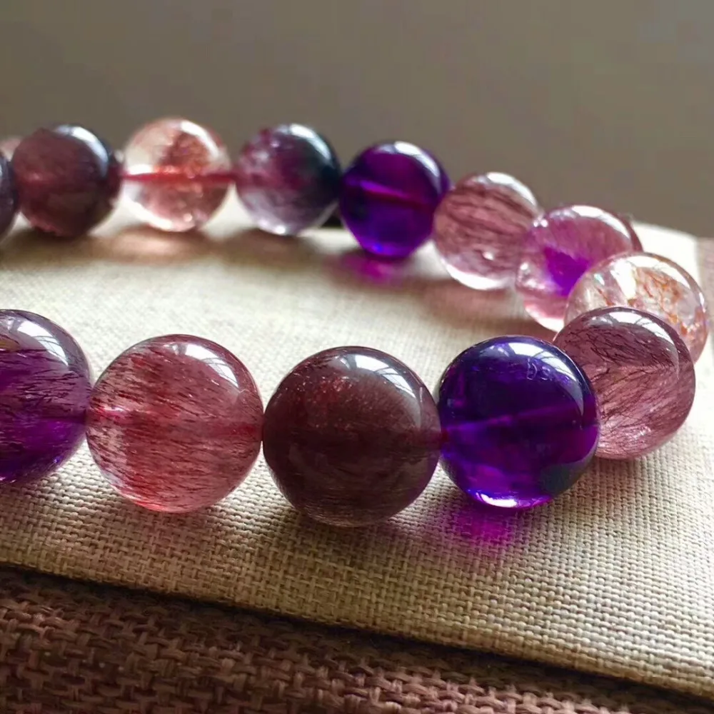 13,5 мм натуральный супер семь Lepidocrocite кварца Rutilated кварца браслет круглые бусины Кристалл ювелирные изделия AAAAA сертификат