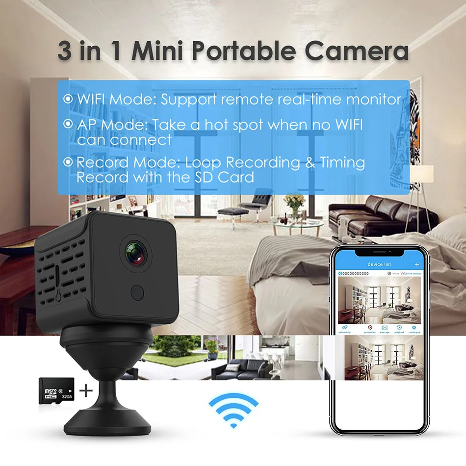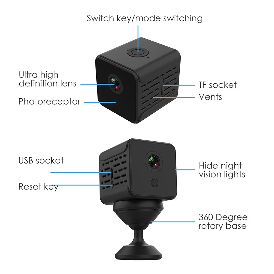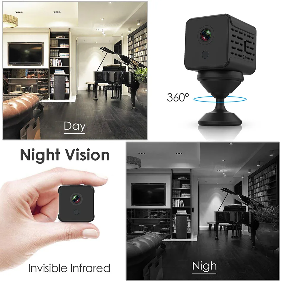 Мини-камера A12-это новейший продукт, с полностью модернизированными функциями. Встроенный аккумулятор может работать непрерывно в течение 5 часов и может быть подключен к источнику питания или блоку питания. Размер продукта маленький и изысканный, не нужно занимать слишком много места, место установки не ограничено. 2 миллиона разрешение HD, изображение четкое и гладкое, когда телефон наблюдает удаленно, все места в доме четко видны. Инфракрасное Ночное Видение делает темноту более четкой. Пульт дистанционного управления для телефона, поддержка системы телефона Android/ iOS, часы в любое время. Без каких-либо колебаний. Просто возьмите его.