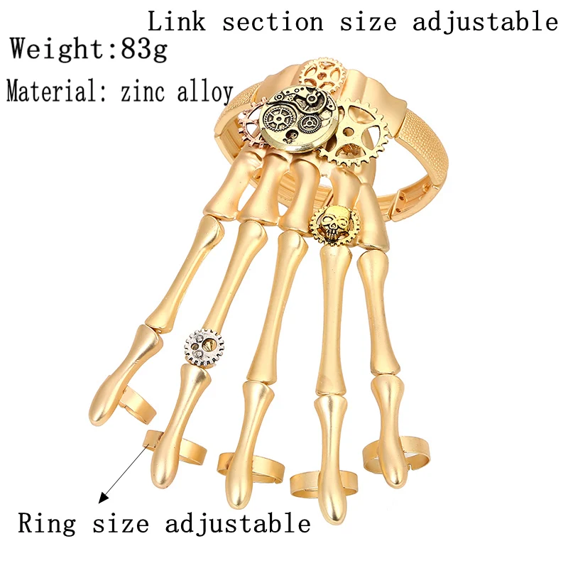 Модный золотой браслет на запястье в стиле панк для женщин аксессуары череп скелет на руку эластичный браслет в стиле стимпанк мужской ювелирный подарок