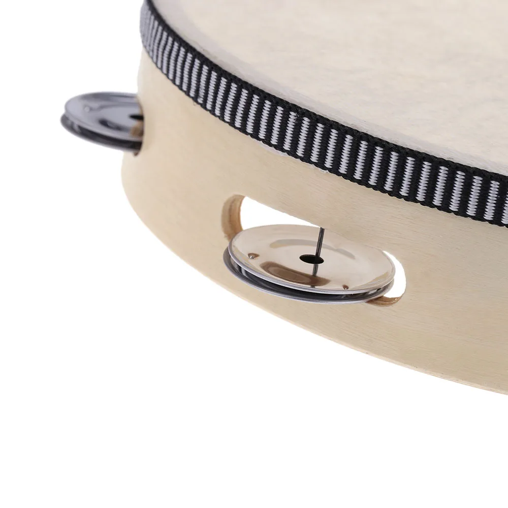 Отзывы о 8" Hand Held Tambourine Drum Bell Birch Metal Jingles Percussion Musical Educational Toy Instrument for KTV Party Kids Games |