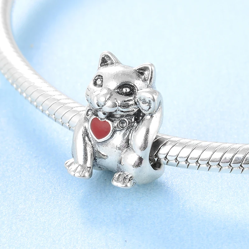 Отзывы о Серебро 925 пробы Модный китайский стиль счастливый кот Красная любовь эмаль