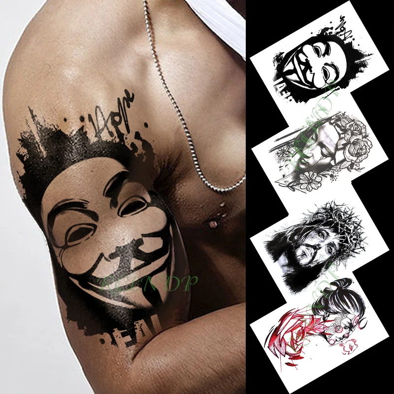 Отзывы о Водонепроницаемый временное тату наклейка "маска" Тотем черепами цветами