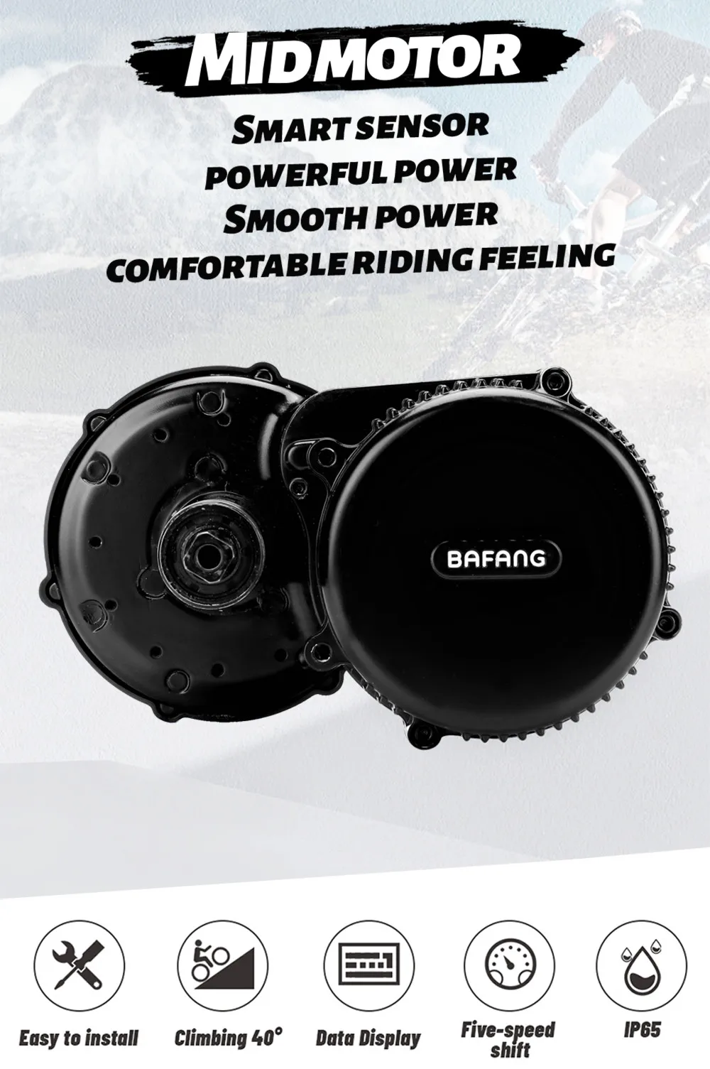 Со встроенным датчиком скорости, этот двигатель среднего привода, который совместим с нижним кронштейном 68-73 мм, имеет номинальную мощность 750 Вт, коэффициент уменьшения 1: 21,9 и максимальный крутящий момент 160 Н. М, обеспечит всадника большой взрывной силой при запуске системы. Очень сильный и эффективный, этот двигатель значительно увеличивает радость езды и подходит для горных велосипедов и песочных велосипедов, которые являются фаворитами гонщиков, которые любят вызовы, а также транспортных велосипедов. Этот двигатель черный.
