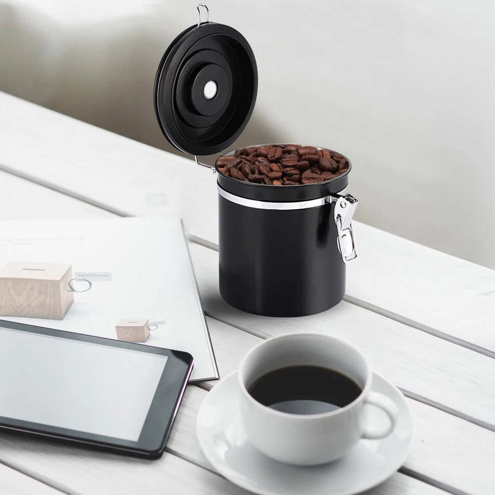 800ML Stainless Steel Kitchen Coffee Bean Container Seal Tank with Vent Valve