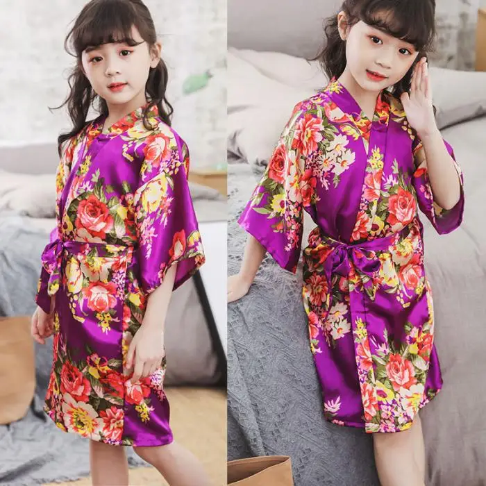 Тип одежды: детский банный халат с принтом для девочек, тонкий дышащий атласный Гладкий ночной халат с поясом на лето