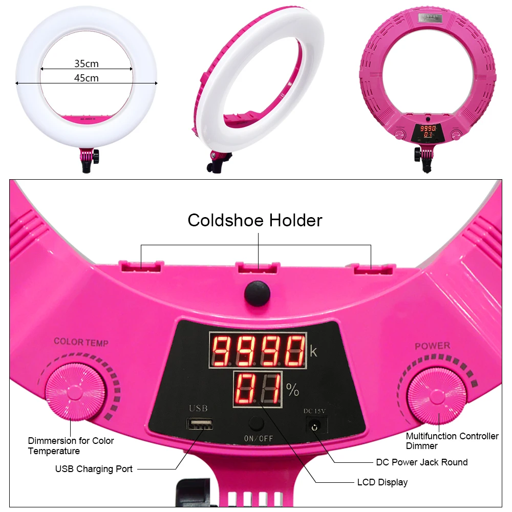 1) светодиодный кольцевой светильник, более высокий CRI: более 95RA, Диммируемый 10%-100%, без мерцания