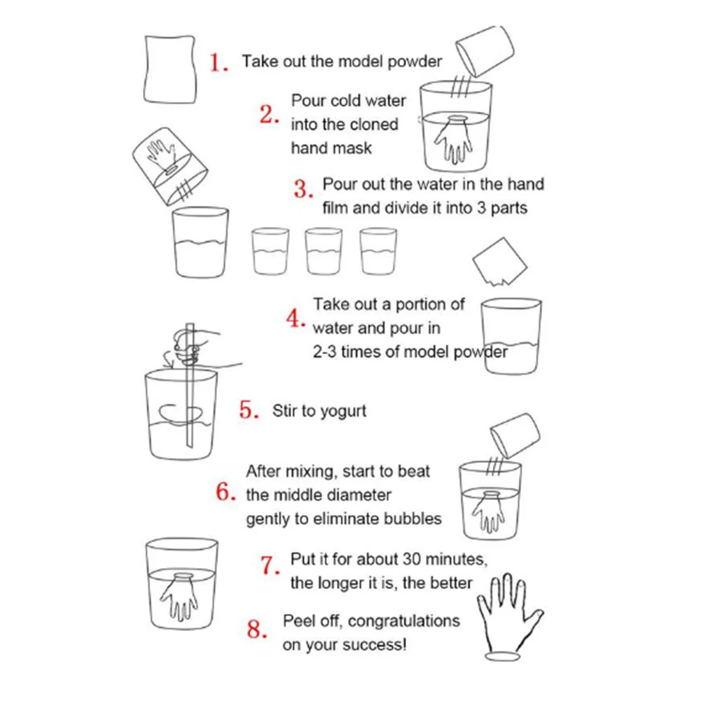 Особенности 1. Дизайн 3D ручной работы: дизайн 3D ручной работы предоставляет вам возможность воспроизвести руки или ноги вашей коллекции в трех размерах с точными деталями. Простое применение позволяет широкий спектр дизайнов и предоставляет вам вечные сувениры для хранения. 2. Специальный подарок: Не упустите эту возможность для себя или в качестве особого подарка при родах, крещении и других семейных и родительских мероприятиях. 3. Простой в использовании: пластырь для младенцев захватывает маленькие ногти, ногти, вмятины и следы, даже если ребенок качается! Это просто, быстро и весело. 4. Комплект содержит: В комплект входят материалы для изготовления 2 полных отливок. Эти материалы будут держать руки и ноги детей в возрасте 9 месяцев. 5. Младенческая штукатурка литье Keepsake: ребенок ноги производитель младенческой штукатурки литье keepsake. Описание: Простые пошаговые инструкции: 1. Смешайте формованный порошок с водой. Вставьте ногу или руку ребенка в литой контейнер. Форма устанавливается примерно через 75 секунд. Откачивайте ноги ребенка (или руки) из формовочного материала. 2. Смешать литой камень мешок с водой. Вылейте литую смесь в форму. Пусть литой камень затвердевает в течение двух часов. 3. Оторвите форму и выньте статую. 4. Окрашивайте и наслаждайтесь! Инструкции по уходу за изделием От 2 месяцев до 1 года: около 100 г + около 100 г порошок клона модели рук или ног. 1-2 года: около 150 граммов рук, около 200 граммов ног Чем старше ребенок, тем больше рук и ног, тем больше дозировка. Около 300 граммов для женских рук для взрослых, около 500 граммов для взрослых мужских рук Особенности: Полностью безопасный: нетоксичный, не аллергенный, 100% биоразлагаемый. Другие предметы, которые вам нужны (не входят в комплект): миска для смешивания литого камня и измерения жидкости. Статуя может отображаться отдельно, или она может быть установлена на доске или помещена в витрину. Упаковочный лист: 1 х 100 г формовочный порошок 1 х 100 г штукатурка 1 золотой порошок, 1 серебряный порошок, 1 жемчужный порошок (опционально) 1 х Кисть Примечание: 1. Из-за ручного измерения допускается погрешность в 1-5g. Пожалуйста, убедитесь, что вы не возражаете до торгов. 2. Пожалуйста, поймите, что цвет может отличаться.