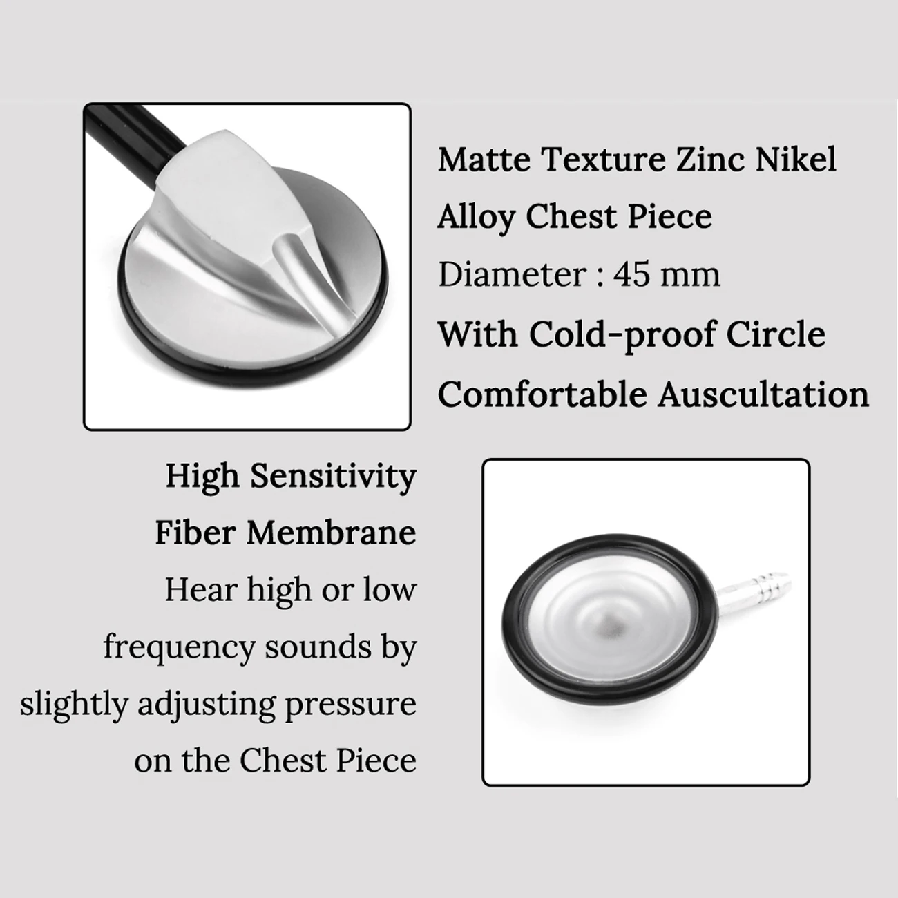 Выдающаяся акустика: стетоскоп оснащен высококачественной медицинской TVC трубкой, матовой текстурой цинкового никелевого сплава иВысокая чувствительность волокнистая мембранаС хорошим эффектом auscultation, и даже полиэфирная Ушная затычка с хорошим внешним шумоподавлением.Он может быть широко использован для сердечно-сосудистой и дыхательной auscultation в больницы, клинике, школе, или дома.