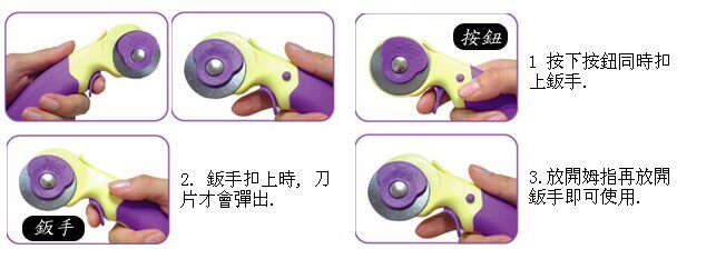* 45 мм круглое лезвие ножа. * Лезвие имеет верхнюю сталь SKS7, которая обладает высокой твердостью и долговечностью. * Мягкие ручки с эргономичным дизайном облегчают работу. * Безопасное устройство На лезвиях позволяет вам чувствовать себя более комфортно. * Выдвижная конструкция лезвия, управление находится между пальцами, Не безопасно и легко собрать. * Мягкий Цвет соответствует вашему прекрасному вкусу. * Подходит для резки ткани большого размера, хлопка, бумаги и различных мягких материалов.