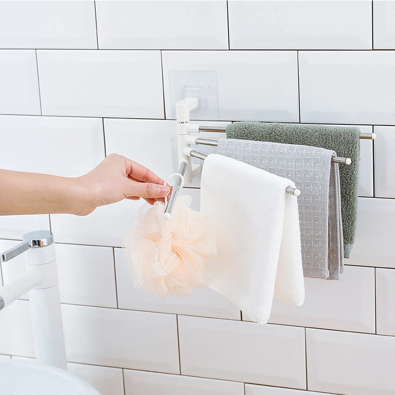 Встроенный 4 вешалка для полотенец, может вращаться на 180 градусов, решить проблему недостаточного подвесного крючка.