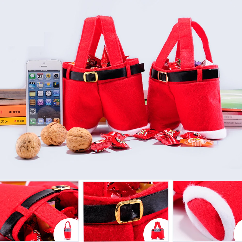 1. Можно наполнить чем угодно, от конфетного вина до подарков. 2. Красный, изготовлен из фетра, можно стирать и сушить на воздухе. 3. Штаны Санта-Клауса и сумка для удовольствия отлично подходят для празднивечерние или для вашего дома во время рождественских праздников.
