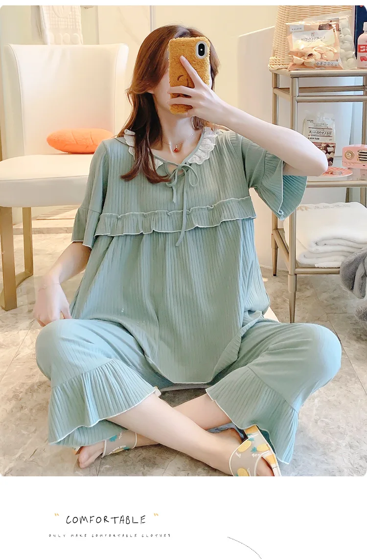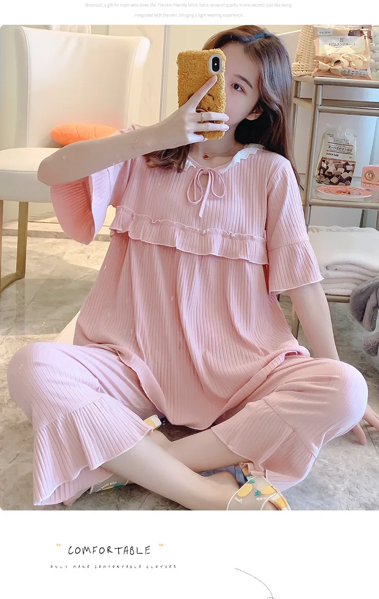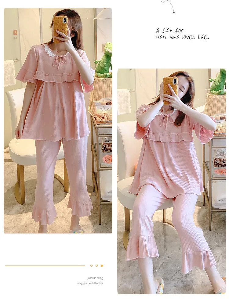 Sweet Thin Cotton Maternity Nursing Sleepwear Suits Summer Breastfeeding Pajamas For Pregnant Women Pregnancy Feeding Nightwear