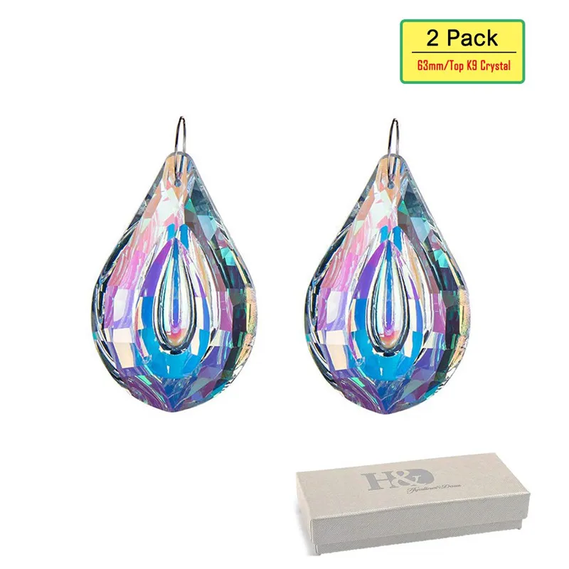 Название продукта: H & DХрустальная Призма на окно, подвесное стекло, защита от солнца, 63 мм, AB, детали для люстры, упаковка из 2 шт., Радужный солнцезащитный Ловец для украшения дома и сада