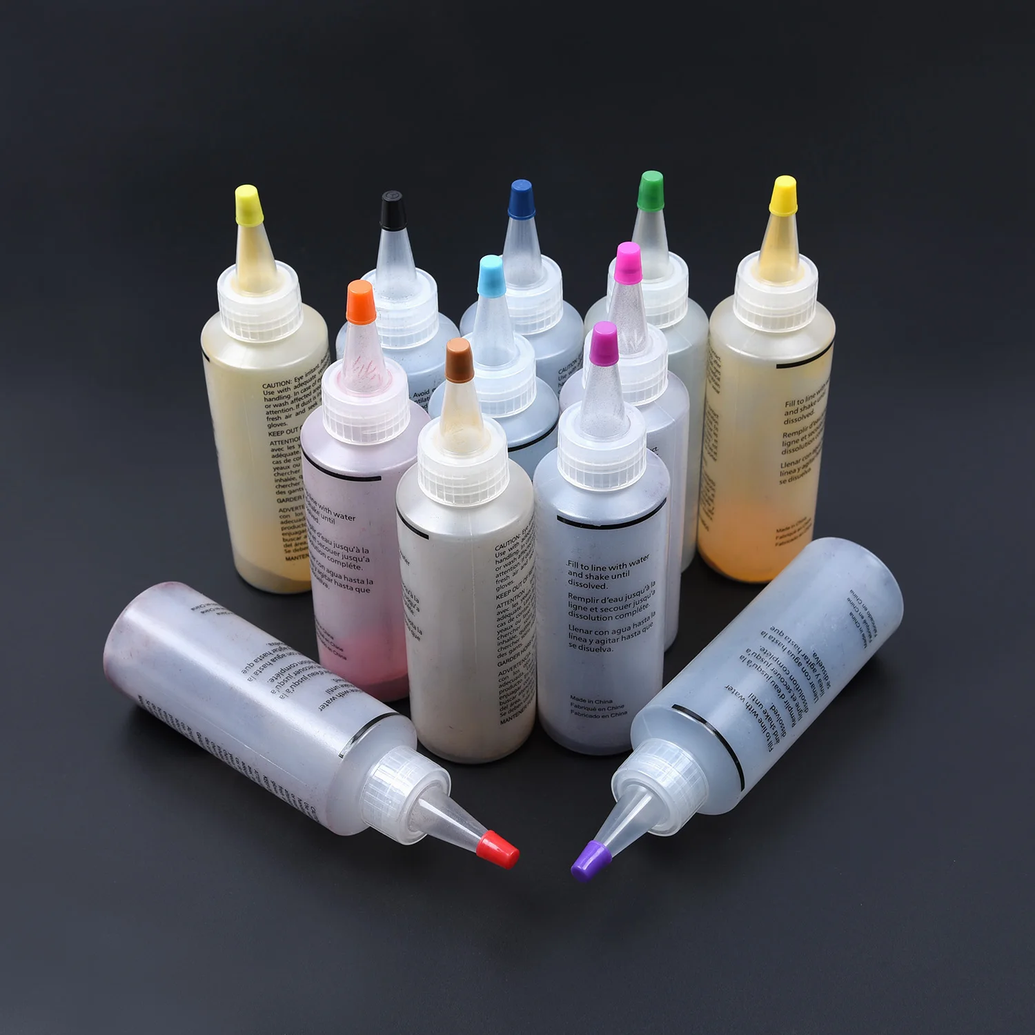 * 12 легко-бутылки-тюбики высококонцентрированных одношаговых красителей в популярных цветах.