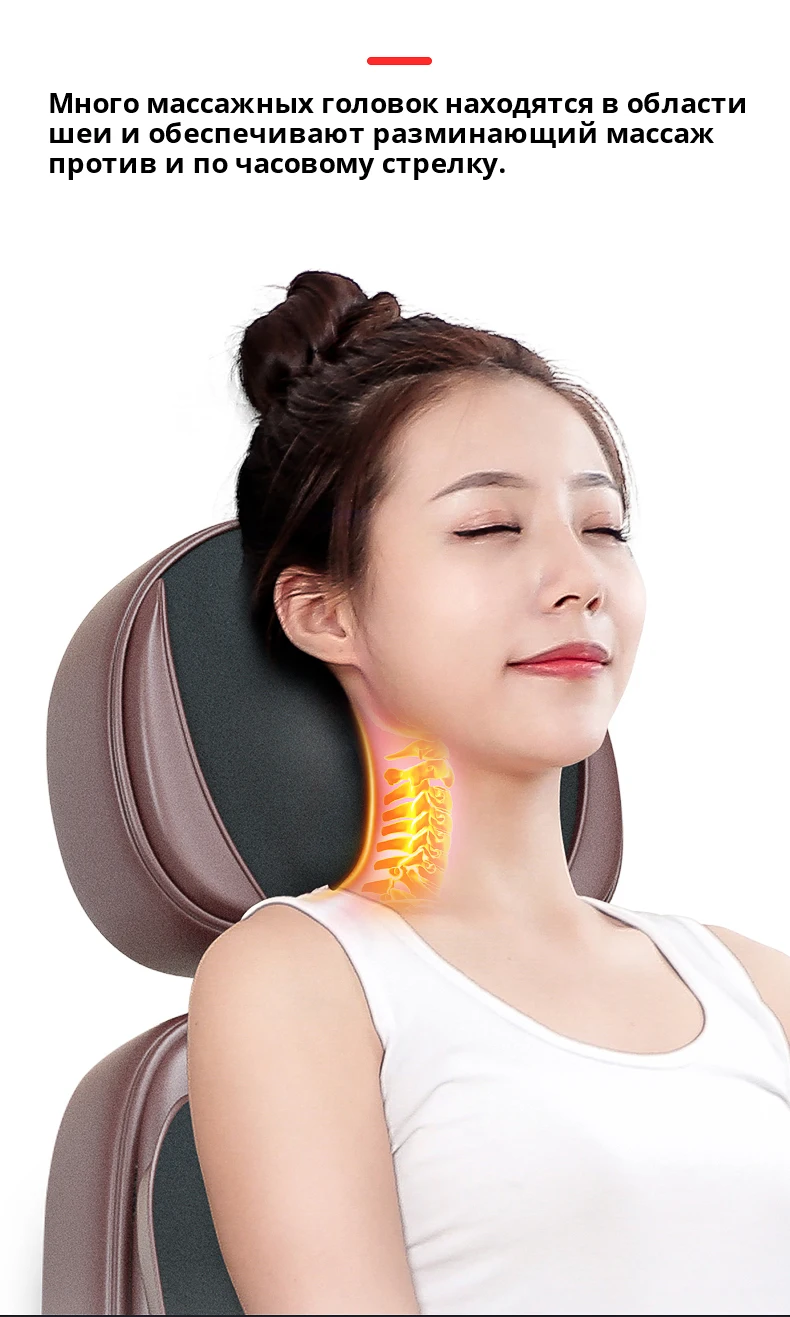 У нас имеется большой массажных головок на шее в виде по часовой стрелке и против часовой стрелки) разминающий массаж