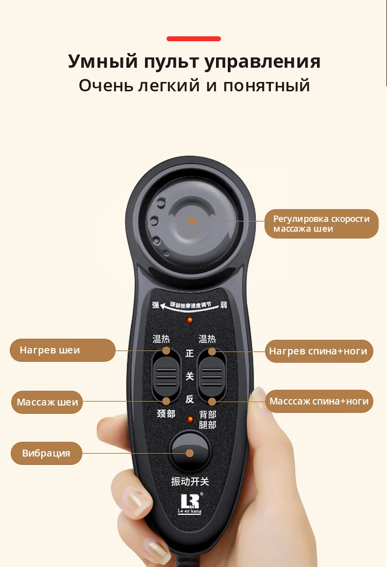 Параметры продукта Название продукта: boydy Массажная подушка Номинальное напряжение: AC220-50Hz Применимая высота: 150 см-185 см Модель продукта: LEK-918L Номинальная мощность: 85 Вт Вес нетто: 10 кг