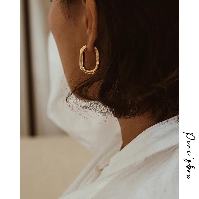 Peri'sBox хит продаж французские золотые шикарные O серьги в форме фигурного кольца женские массивные латунные обручи геометрические серьги минималистичный