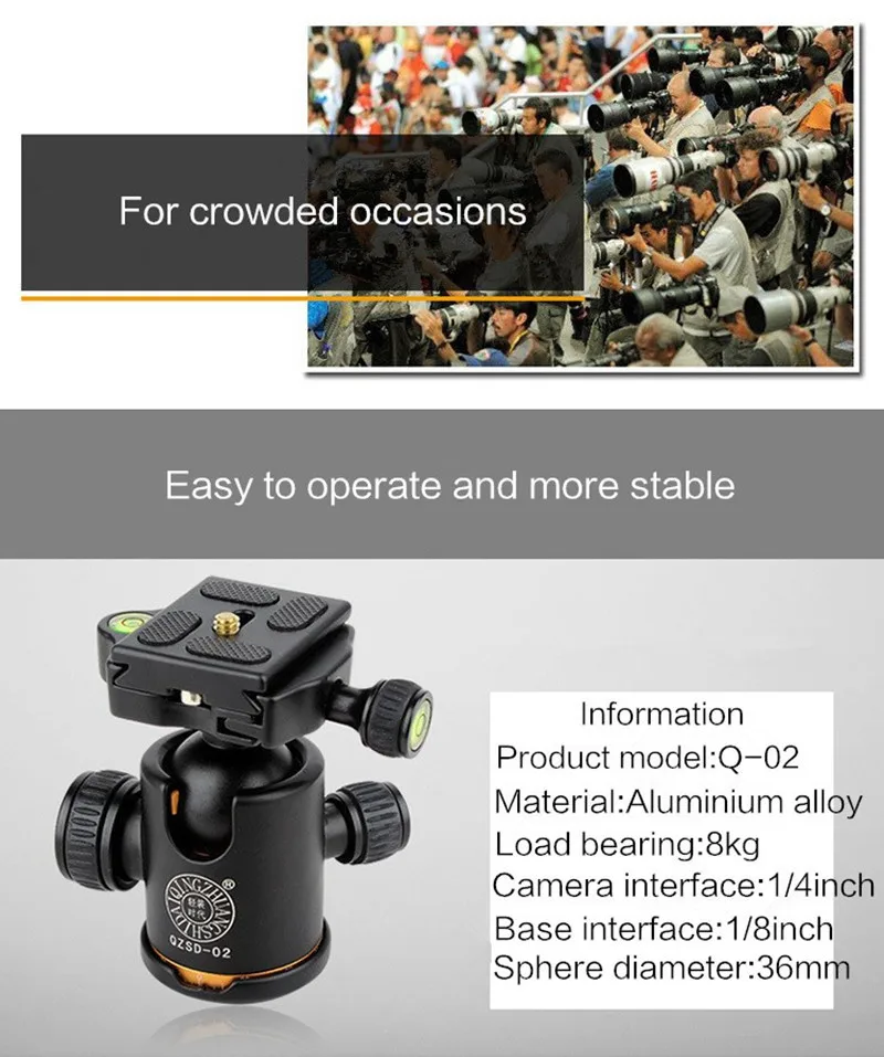 Высота шаровой головки: QZSD-02 (алюминиевый сплав)