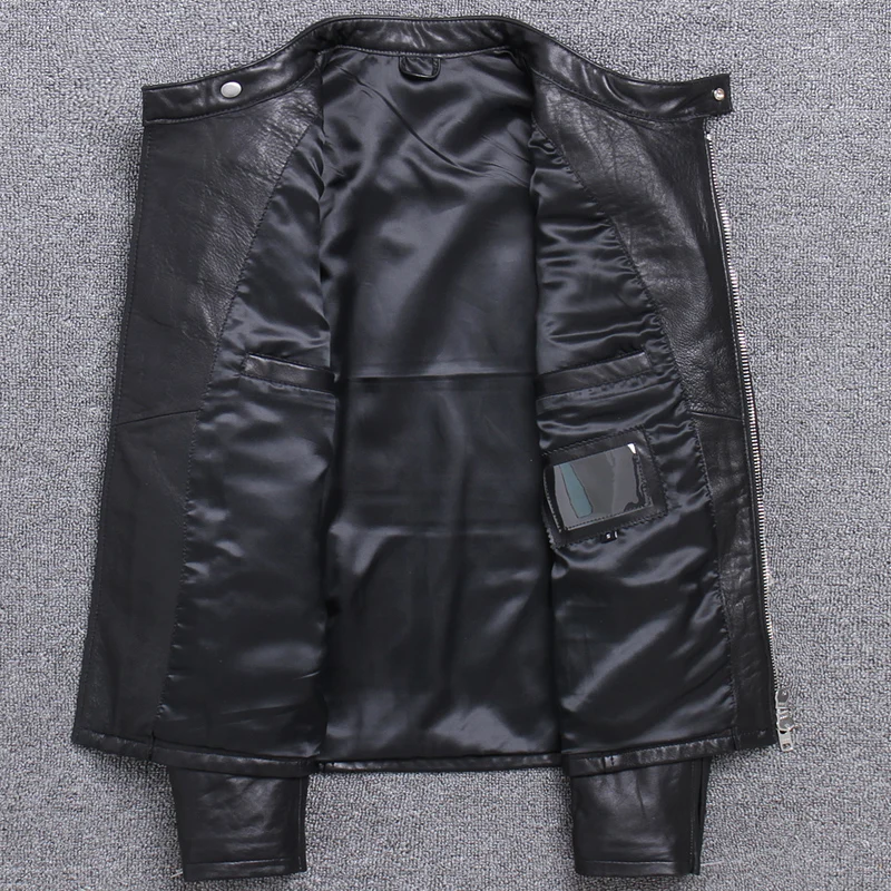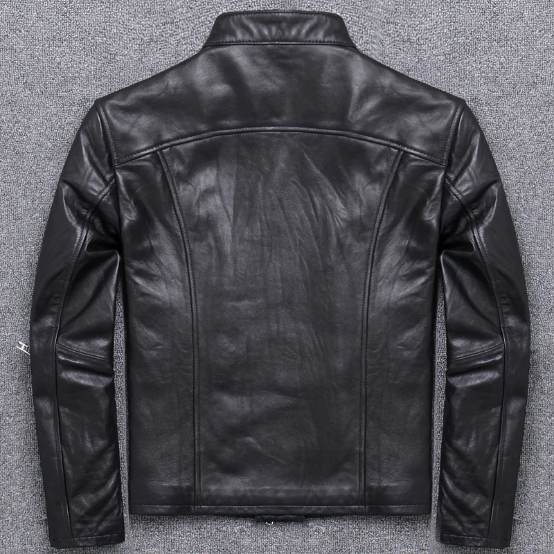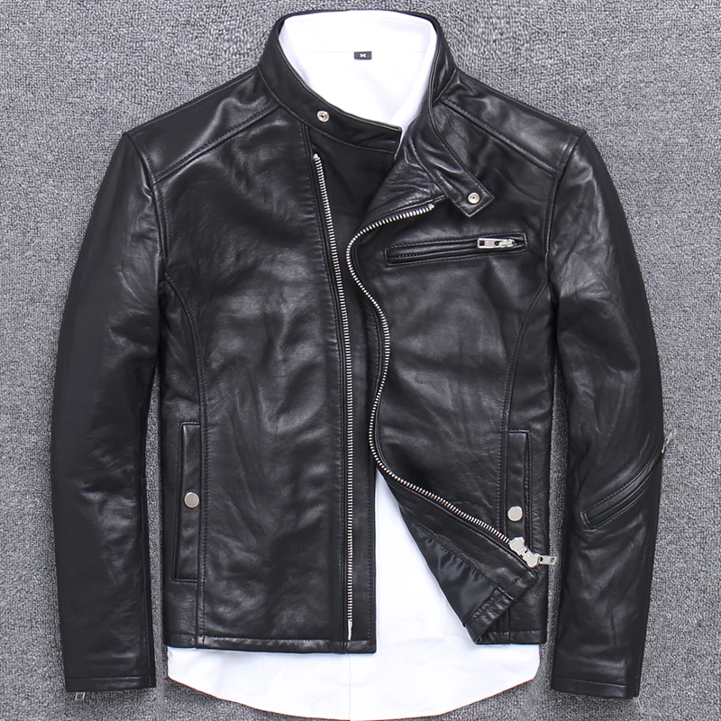 Отзывы о Бесплатная доставка брендовая модная мужская Тонкая куртка из натуральной кожи