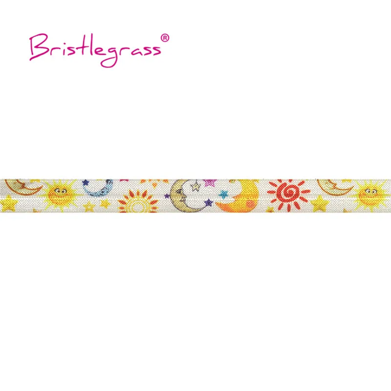 Оптовая продажа, 50, 100 ярдов, 5/8 ", 15 мм, принт Sun Moon Star, складывается поверх резинок, FOE, спандекс, сатиновые ленты, повязка для волос, швейная отделка