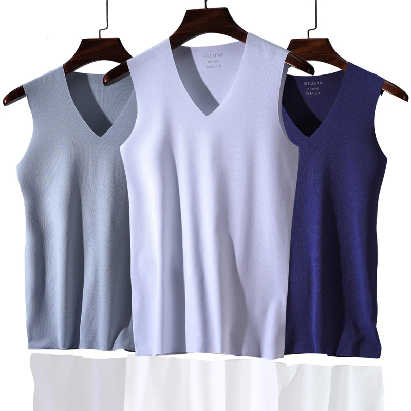 Мужской жилет, нижнее белье, сексуальная мужская майка с v-образным вырезом, боди из бамбукового волокна, безрукавки, повседневные, для борьбы, Мужская шелковая бесшовная рубашка