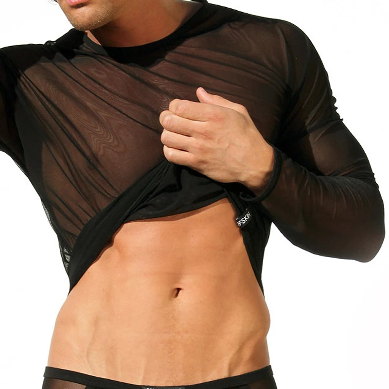 Отзывы о Мужская компрессионная футболка прозрачная Сетчатая с длинным рукавом