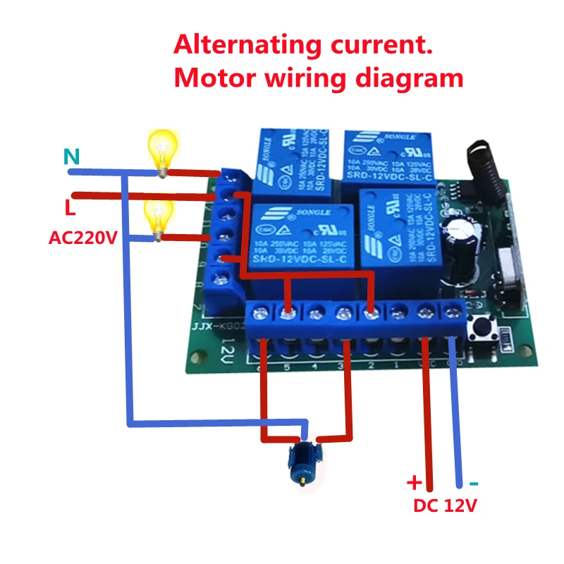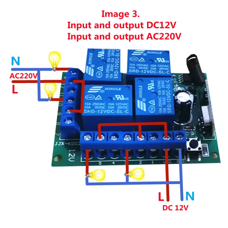 Нажмите кнопку «А» кнопку на пульте дистанционного управления и реле включается. Отпустите кнопку «А» кнопку на пульте дистанционного управления и реле выключится.